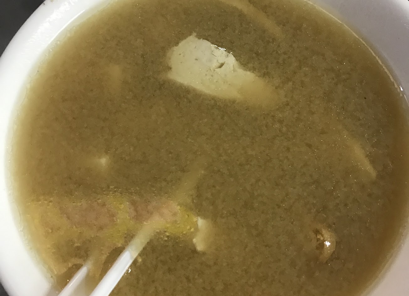 ?豬血湯:有滿滿的榨菜和韭菜,聞起來沒特別味道,喝起來意外偏甜,像一開始戀愛的樣子!