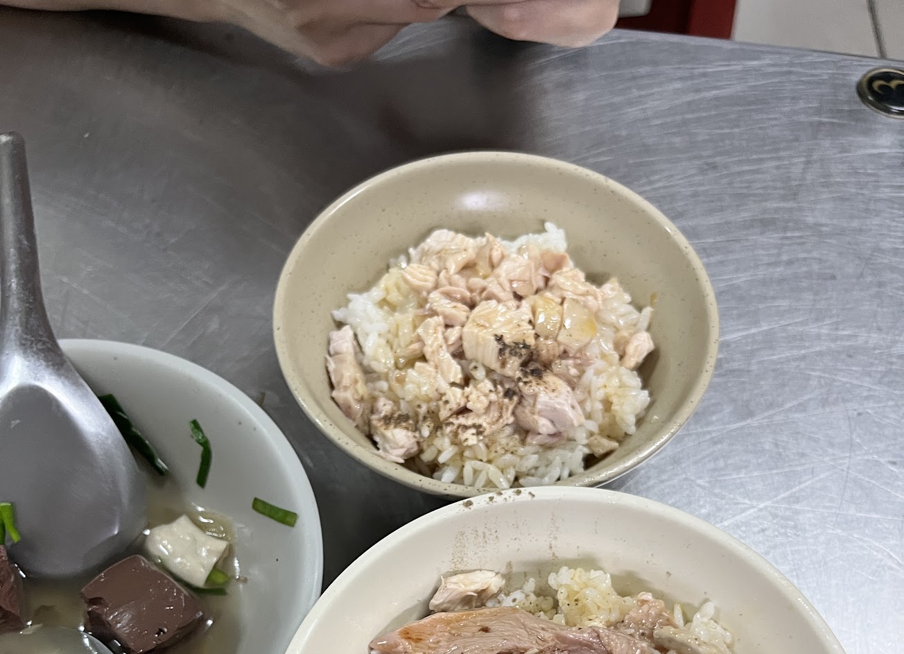 雞肉飯的部分不是絲,像切小碎塊的感覺。豬血湯的油蔥太多了。