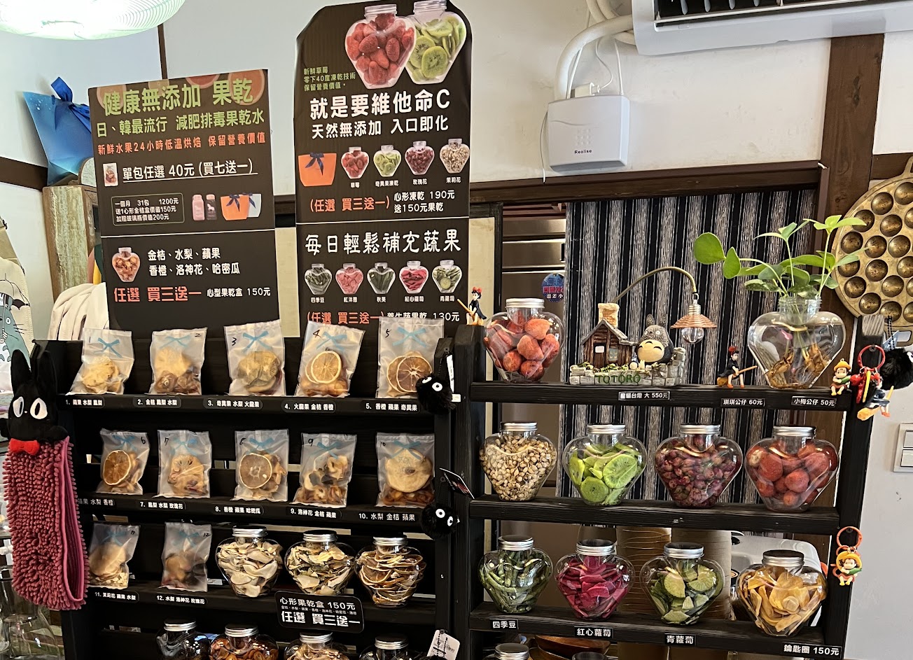天然美味:這間位於檜意生活村內的店家,主打天然彩虹燒,有一說是這個彩虹燒是起源於泰國椰米燒;店家也提供果乾、咖啡、冰淇淋及奶茶。除此之外,也有根據知名動畫大師宮崎駿作品而製的產品,如龍貓及魔女宅急便布偶及吊飾。適合拍照及飲食。相關資訊及費用,請以現場為主。