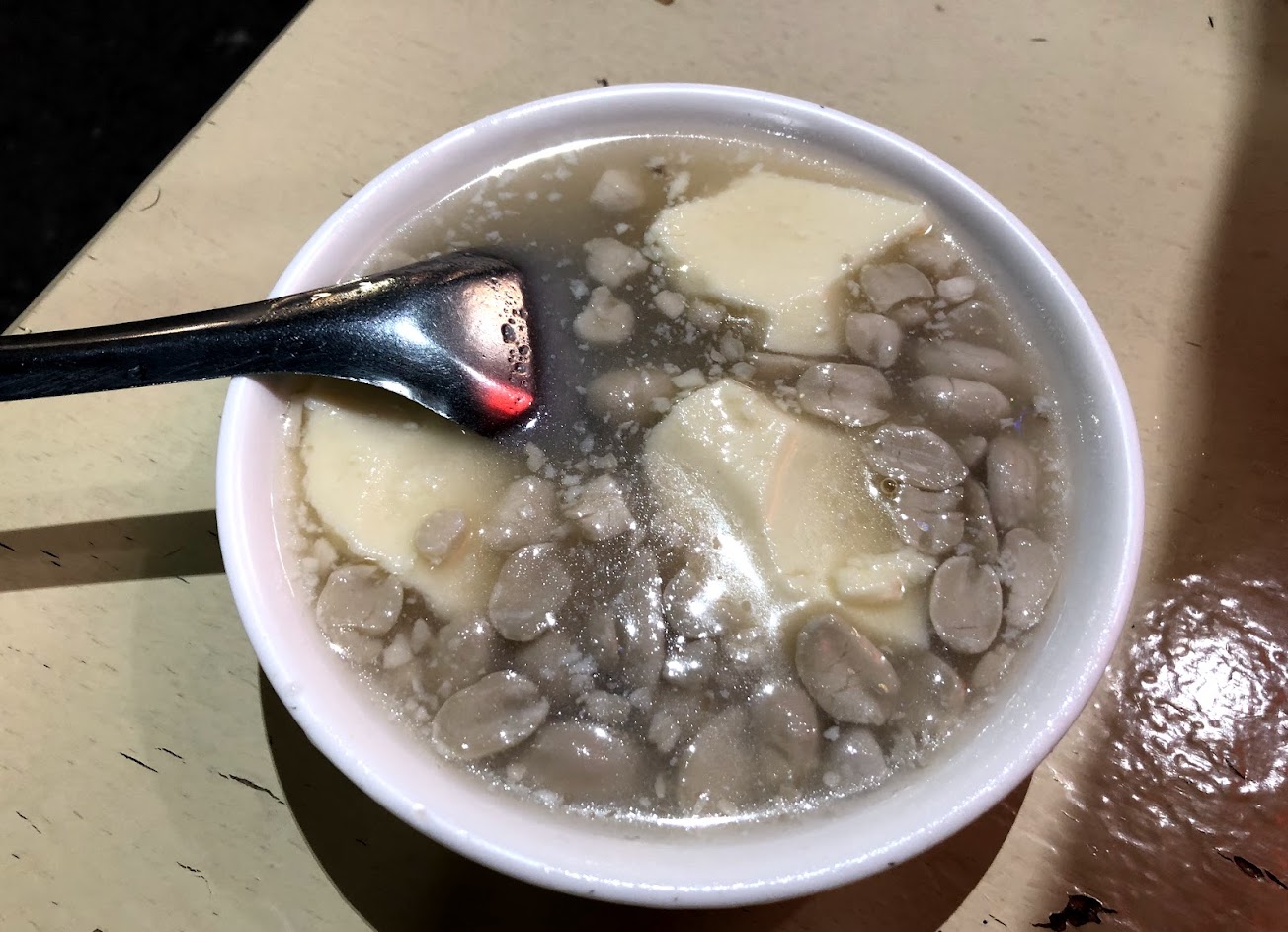 很便宜,晚上11點到的時候已經沒有珍珠(粉圓)了,點了薏仁豆漿豆花跟花生湯,豆漿很甜,如果有碎冰的話可能會好一點。