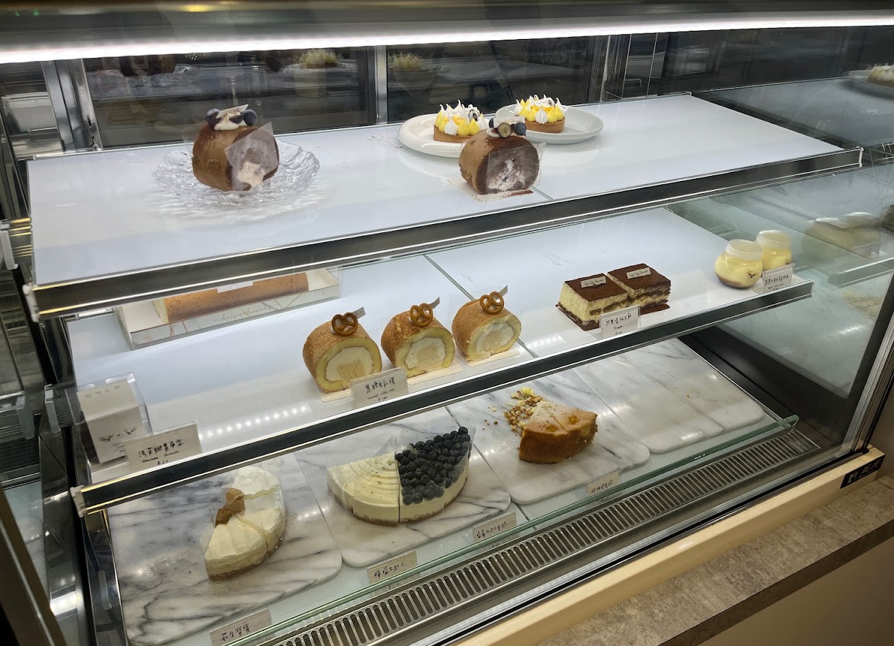 檸檬塔很優,外型好好看,酸度適中,經典巧克力也很棒,苦甜不膩。