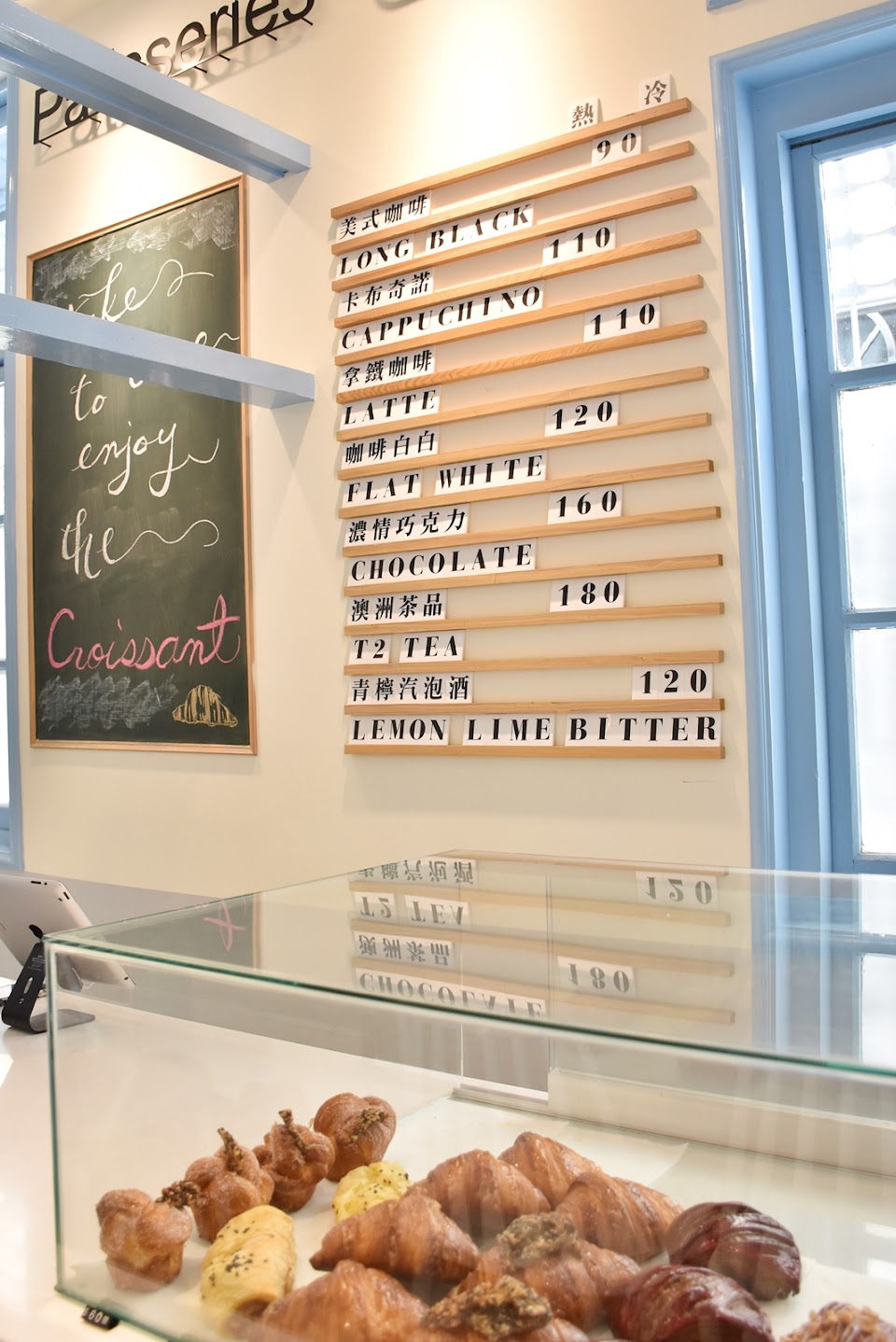 位在延平街上的可頌小店 外觀擦上藍色的漆讓人很放鬆 裡面的可頌們都是闆娘天天現做 今天運氣好 11點到還有很多選擇 除了可頌們 還有咖啡、澳洲進口氣泡飲料可以搭配