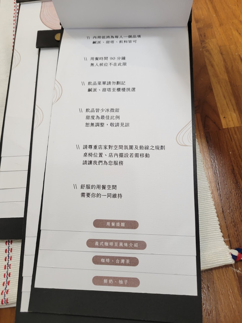 低消一人點一份甜點或飲料皆可,內用只有四桌。