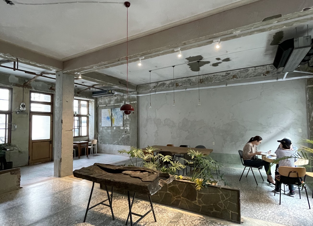 工業風的咖啡館,設有花園露台,供應傳統豆花和其他小吃。