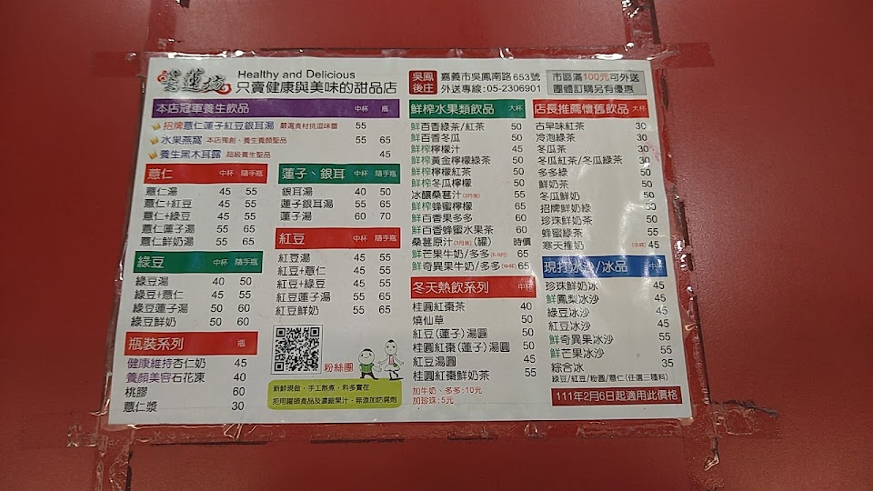 一杯50元的薏仁綜合甜品 可能在煮食材的時候芶芡及糖方面多放了一些 黏稠又過甜的口感 吃個幾口就感覺又畏又膩(自行加一點開水下去攪拌 口感會好一點) 號稱精緻養生品專賣店 就應該要在添加物上多加細膩講究一點 才符合店招牌養生品的宗旨 前些年買過一杯薏仁綜合還在35-40元的時候 印象中的口感不是這樣的 是不是經營有異主 而做法有所不同就不得而知