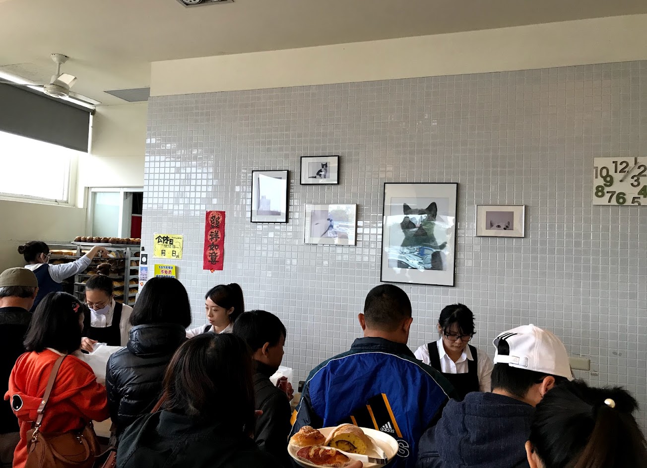 不管任何時段去都是滿滿人潮。隨著不同的出爐時間,都有不同的麵包及糕點提供挑選。