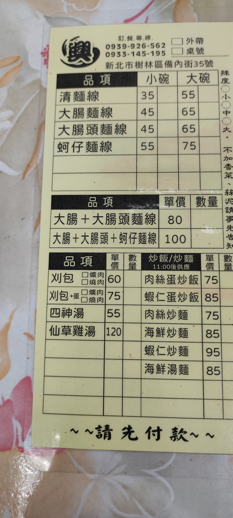 2024最新在地推薦餐廳的菜單_興大腸手工麵線的菜單、圖片