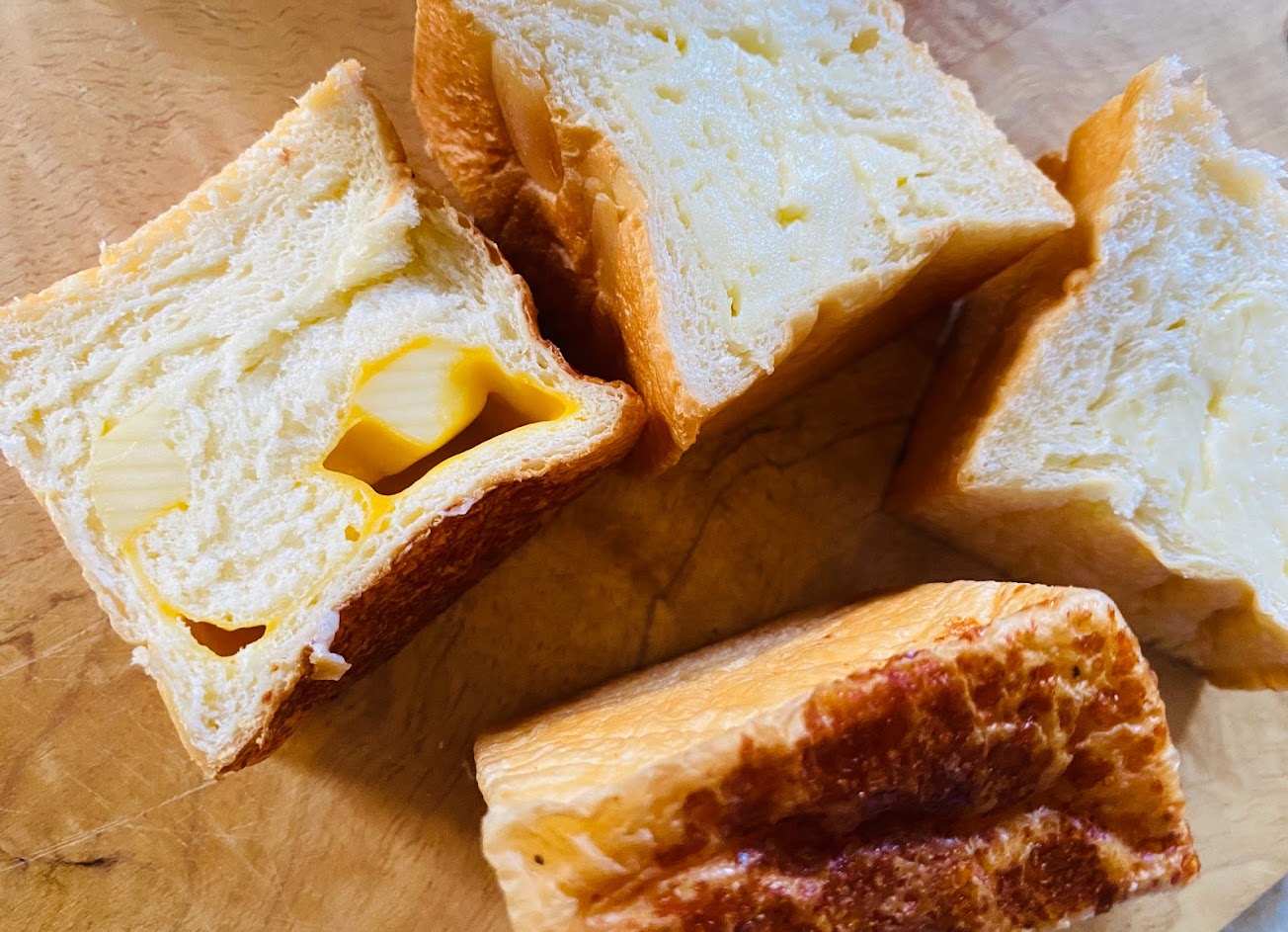 這麼多人在排隊,我們就跟著他們。也許它的特別之處在於麵包的立方體形狀