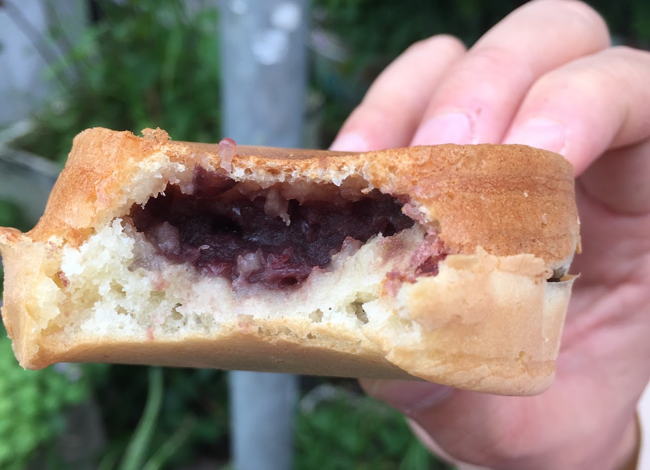 比一般的日式紅豆餅,外皮更硬一些,有特殊的蔬菜口味
