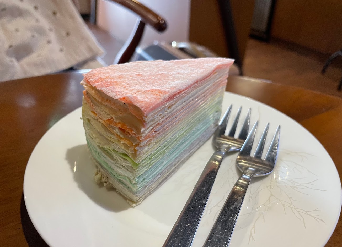 最吸睛的彩虹千層果然好吃,奶油偏水嫩但又不會影響叉子切下去的手感以及食感。