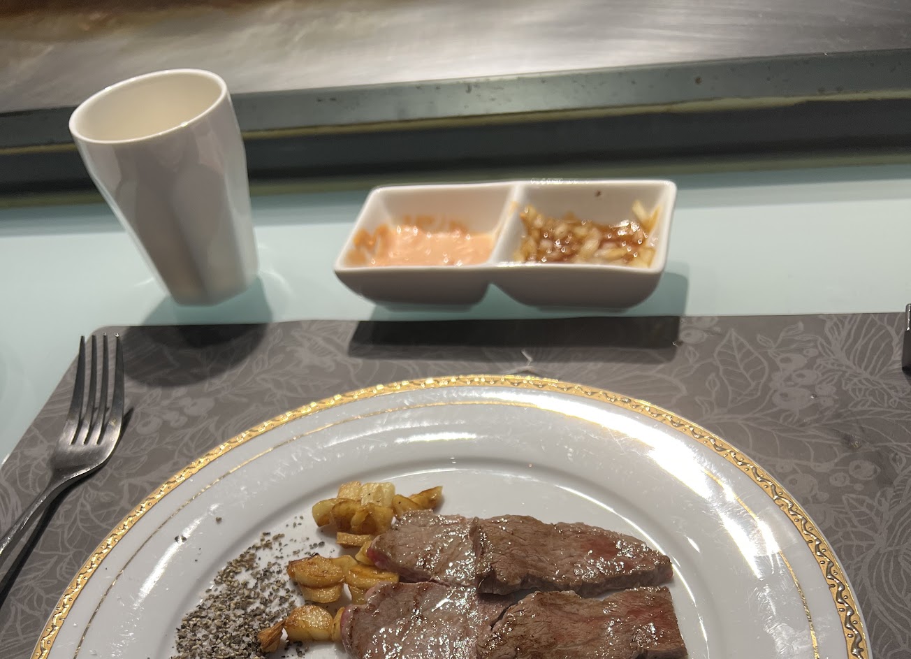 鐵板燒貴在互動式用餐,這部份感受度接近是0,只有介紹魚是青衣 建議先吃原味,其他食材沒有太多說明,也沒有詢問口味的調整。