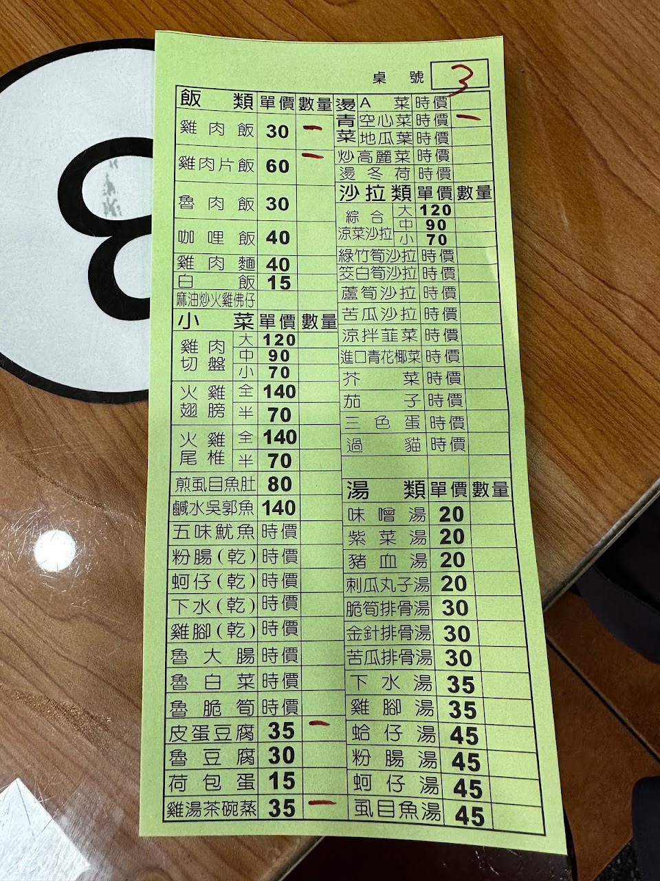 餐點:3