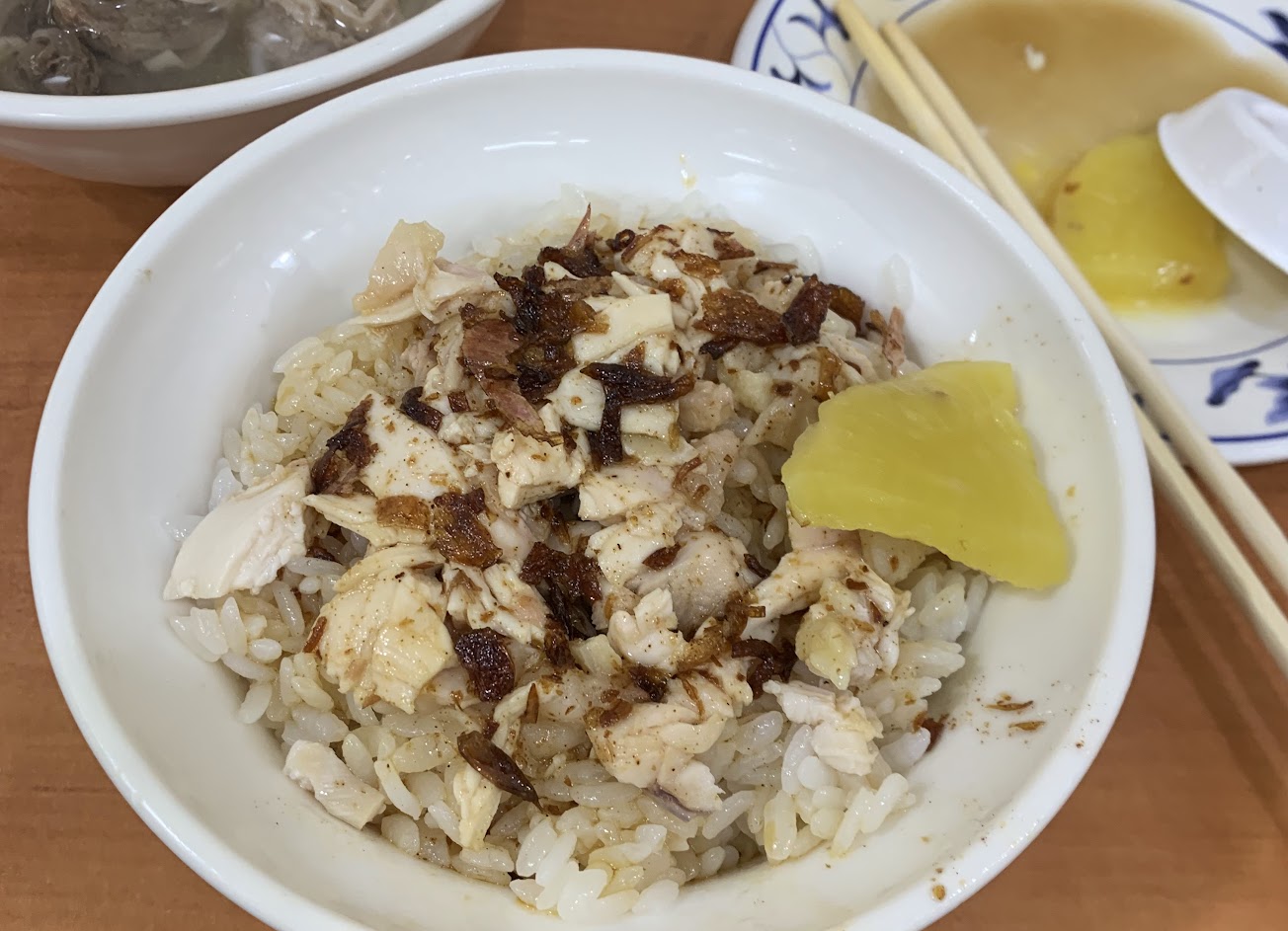 雞肉飯的飯很香,應該有絆油跟油蔥,雞肉蠻嫩的,可惜吃完有點膩。
