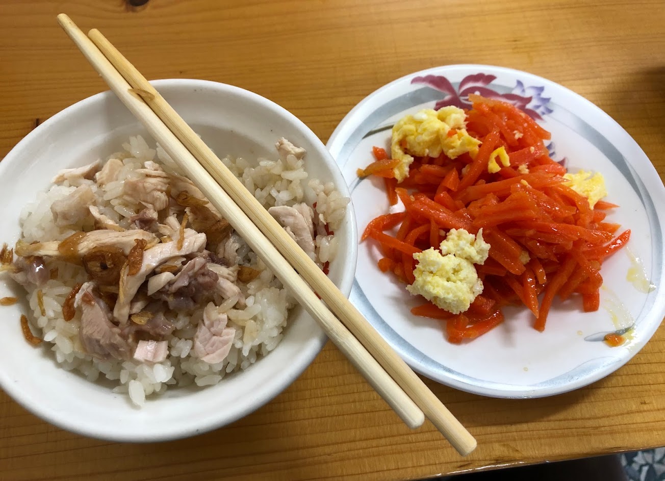 雞肉絲不乾柴、油蔥香油適量拌飯剛剛好,入口到咀嚼後尾韻清香、鹹度適中。配菜青菜也蠻爽口好吃。