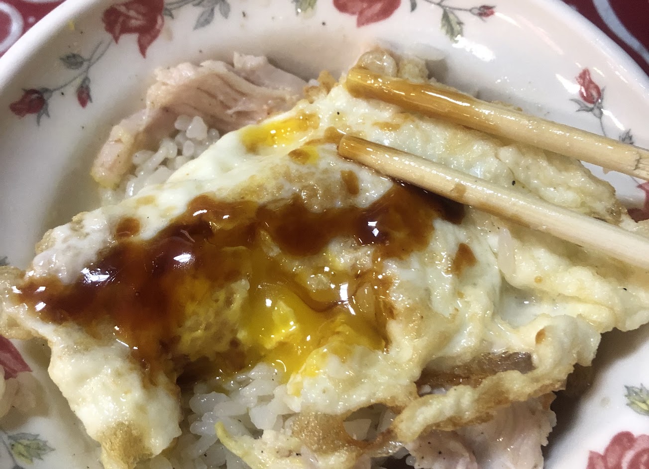#荷包蛋 有淋醬油膏,有點過熟又偏油。