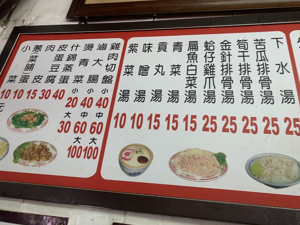 今天點了四碗小火雞肉飯、一碗蒸蛋、貢丸湯、苦瓜排骨湯、下水湯筍乾、蔥蛋、菜脯蛋,小碗火雞肉飯20,雞肉飯是醬油派的,沒有油蔥,重口味的會覺得吃起來比較清淡,蒸蛋普通,湯應該是統一一鍋湯,貢丸湯有微微苦瓜味,貢丸吃起來應該是煮一段時間了,口感偏軟,味道已經沒有甜味了,市場周圍的傳統小店,沒有冷氣非常熱,但價格很親民,份量也算多,吃粗飽的可以來吃,店員記性很好,服務也不錯,只是食物剛好不合我胃口,以上給大家參考。