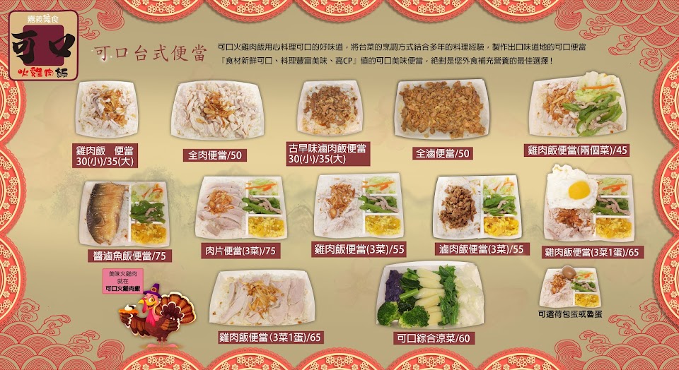 今天來到嘉義市辦事,再找看有什麼好吃的雞肉飯,本來想吃阿樓師雞肉飯但是四點才開所以只好換別家,亂轉到了一個偏僻的市區有一間可口雞肉飯連看都沒看過,就進去瞧瞧有看哇滿屋都是人,看了看菜單真是便宜,所幸點了幾道小吃嚐嚐,還有我最愛的火雞片雞肉飯,雞肉嫩而不柴,鹹度都調的剛好重點很多樣小菜都很便宜整體雞肉飯分數很高! 這個因該在地人比較知道! 有空可以去嚐嚐看^_^