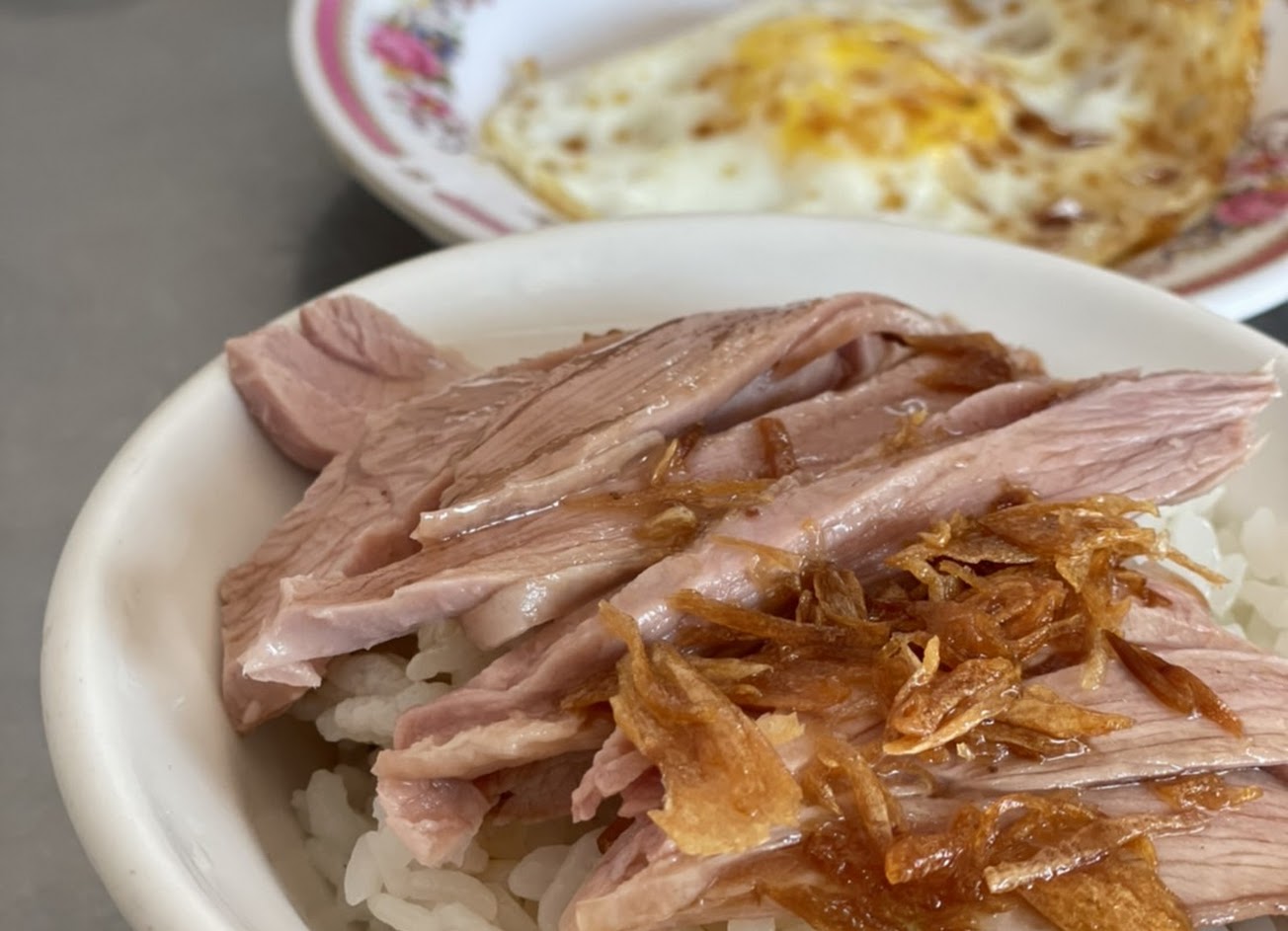 小肉片飯(50):肉片夠厚但嫩且不柴,整體是偏清淡的,不膩且有香氣,有炸油蔥酥賦予層次。 荷包蛋(10)