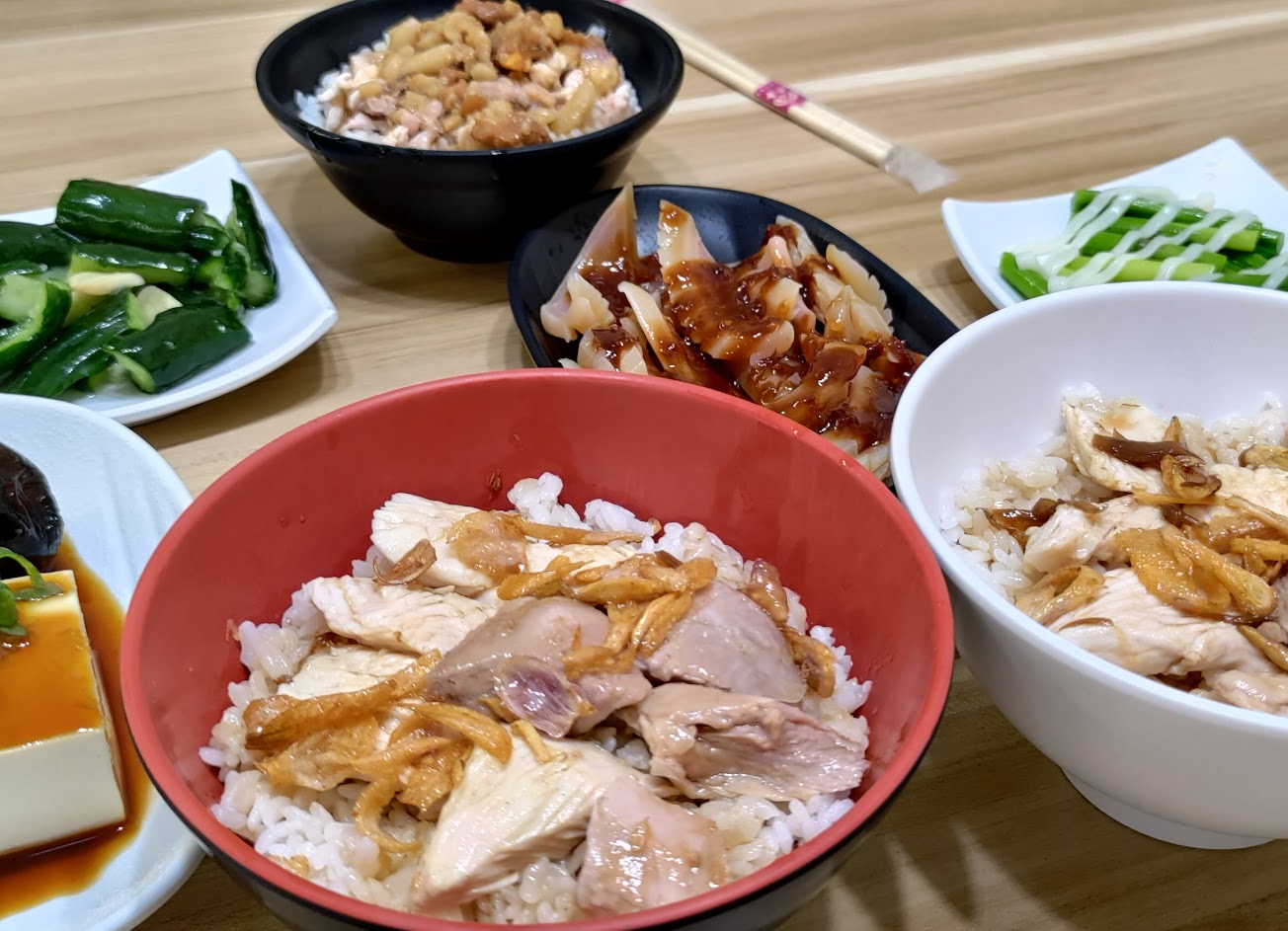 雞肉飯跟雞片飯都很好吃,油蔥酥很香。半熟荷包蛋很讚,味增湯跟蝦仁湯表現也很不錯,小菜很清爽,店面環境很整潔。