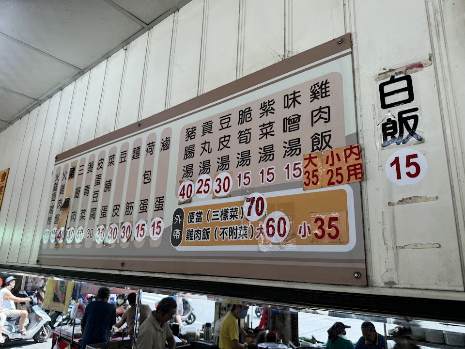 內用的大是外帶的小,還分橫向縱向兩種方式書寫,為何不改成”大55中35小25,僅限雞肉飯、便當外帶”即可,在我前面的外帶者很疑惑,我看了菜單也很疑惑。