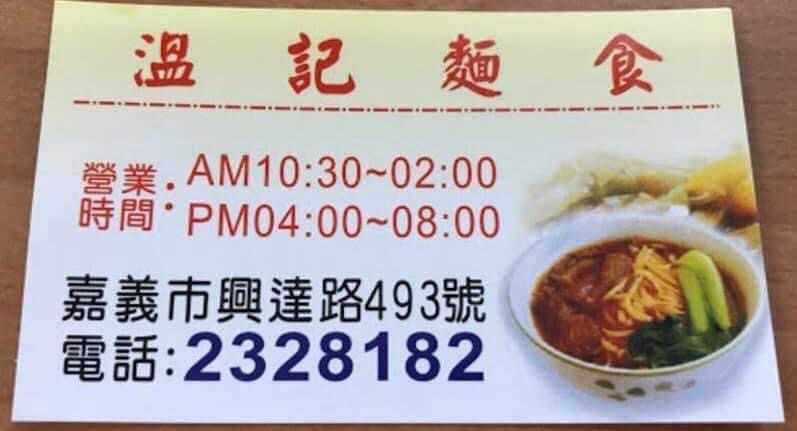 自從蘭井街的溫家牛肉麵收店後,興達路這家似乎成為嘉義市溫氏系列麵食最後一家店。牛肉麵湯頭沒有蘭井街夠味,但也在水準之上,麻醬麵則有過之。麵條口感佳、不軟爛。蔥油餅、小菜有火車站前舊店家的水準。蔥油餅要吃現炸的,冷了就不好吃。店面還算乾淨明亮,店員態度良好。值得推薦。