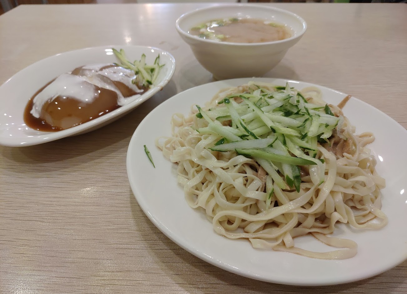 點了雞絲涼麵和涼圓。 雞絲涼麵的部分還蠻清爽的,醬汁的部分給的不夠多,吃起來雖然不膩,但是又有一點不足的感覺。 涼圓的部分反而的給醬汁很足夠,味道也算是蠻不錯的。