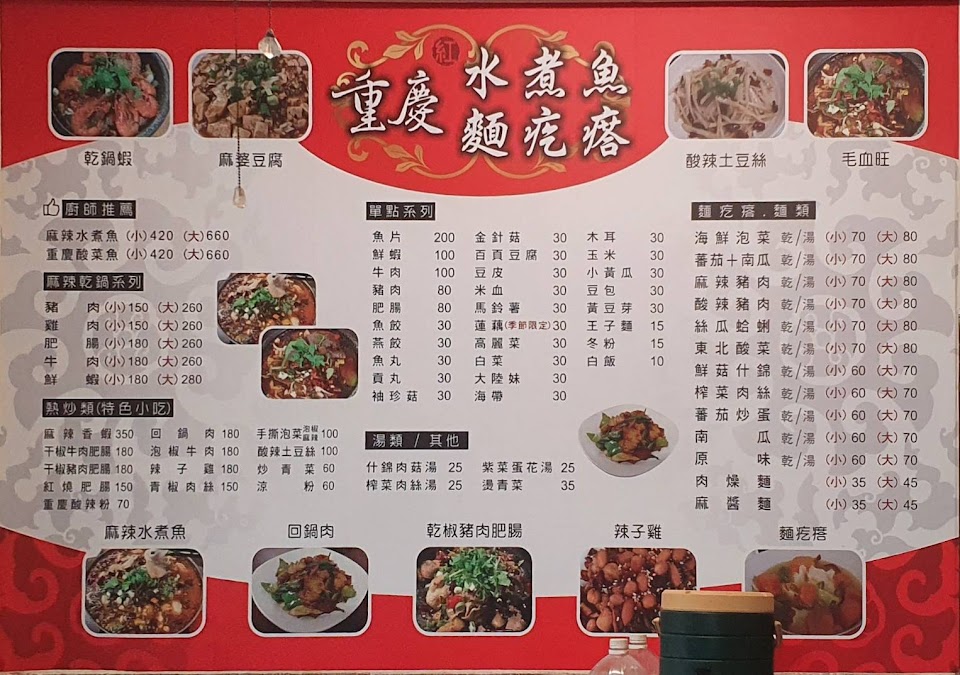 但是缺點還是要和各位說一下,如果你是喜歡吃一些口味的人,面疙瘩系列我就覺得比較普通,很沒味道,湯也是,和麻辣乾鍋截然不同。 另外就是飯給的很少,所以吃麻辣乾鍋的時候需要注意自己是不是很喜歡吃飯,否則可能需要點到兩碗 最後一點就是,我自己在中國當地吃的水煮魚不會在加上任何配菜進去,就單純只是水煮魚。我也認為這樣會比較好,要不然魚刺魚肉 和一些火鍋料混在一起,就覺得很煩,如果不加一些料也可以相對降低成本,純屬建議。 麻辣乾鍋讚讚 服務 外帶 餐點類型 午餐 平均每人消費金額 $1-200 餐點:4 服務:4 氣氛:4 建議的餐點 麻辣豬乾鍋肉
