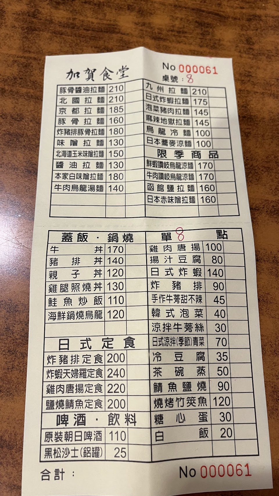 2024最新在地推薦餐廳的菜單_嘉義加賀食堂 拉麵・烏龍麺・丼飯的菜單、圖片