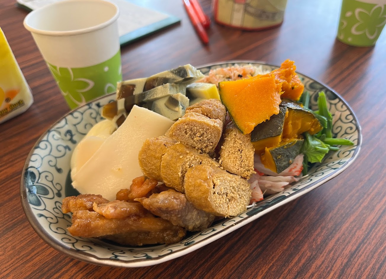 配菜部分,手捲的部分是用地瓜泥和高麗菜絲組成,有別於一般都用苜樹芽的手捲,吃起來更加爽口;最重要的是綜合沙拉,$120一盤,貫徹了ㄍㄋㄋ塞爆的精神,時不時還有一些不一樣的海鮮,例如蚵仔、櫻花蝦、鮭魚…每次點都很像在開驚喜包。