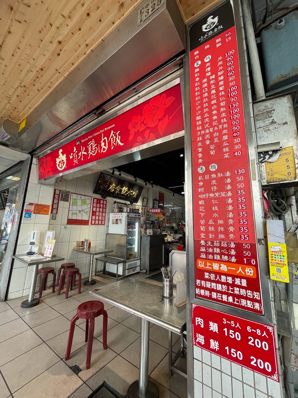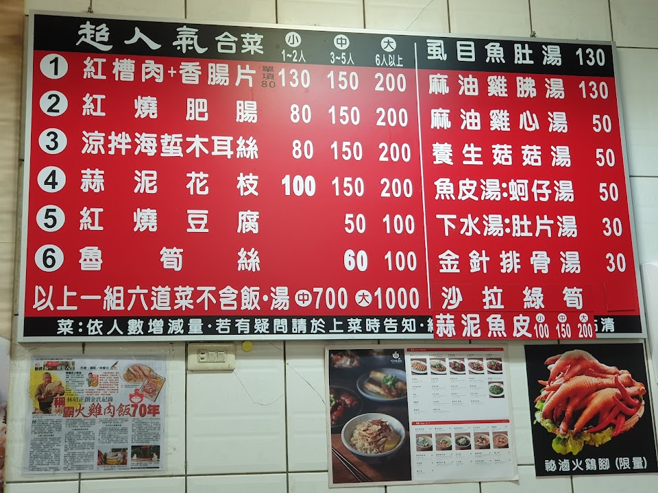 七十幾年的老店,雞肉飯很香很好吃,還有雞油醬汁很入味。滷蘿蔔非常好吃,皮蛋豆腐比較一般,高麗菜與地瓜葉炒得很道地下飯。另外有筍乾也是不會太鹹,苦瓜口味也剛剛好。紅糟肉肥瘦各半非常好吃,老闆說是招牌,雞肉切盤覺得較無特色,不一定有需要點。整體來說餐飲環境算好,有冷氣也算整潔,老闆急著點餐急著這算賬,好像一直在趕人,我們都可以理解急需翻桌率,但吃飯氣氛就被打壞了。 服務 內用 餐點類型 晚餐 平均每人消費金額 $1-200 餐點:5 服務:4 氣氛:4 建議的餐點 滷筍絲 蒜泥花枝 停車位 停車不方便 附近的停車場 付費路邊停車 付費室內停車場