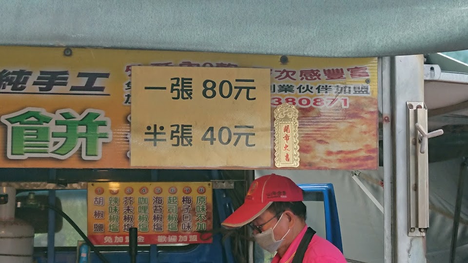 外地客經過,被排隊的人潮吸引購買。微焦脆的餅皮,口感不過油,並保持了一定的嚼勁,搭配馬告椒鹽口味,鹹香酥口,已然填飽的肚皮仍硬生生的塞入了半份蔥油餅,欲罷不能。