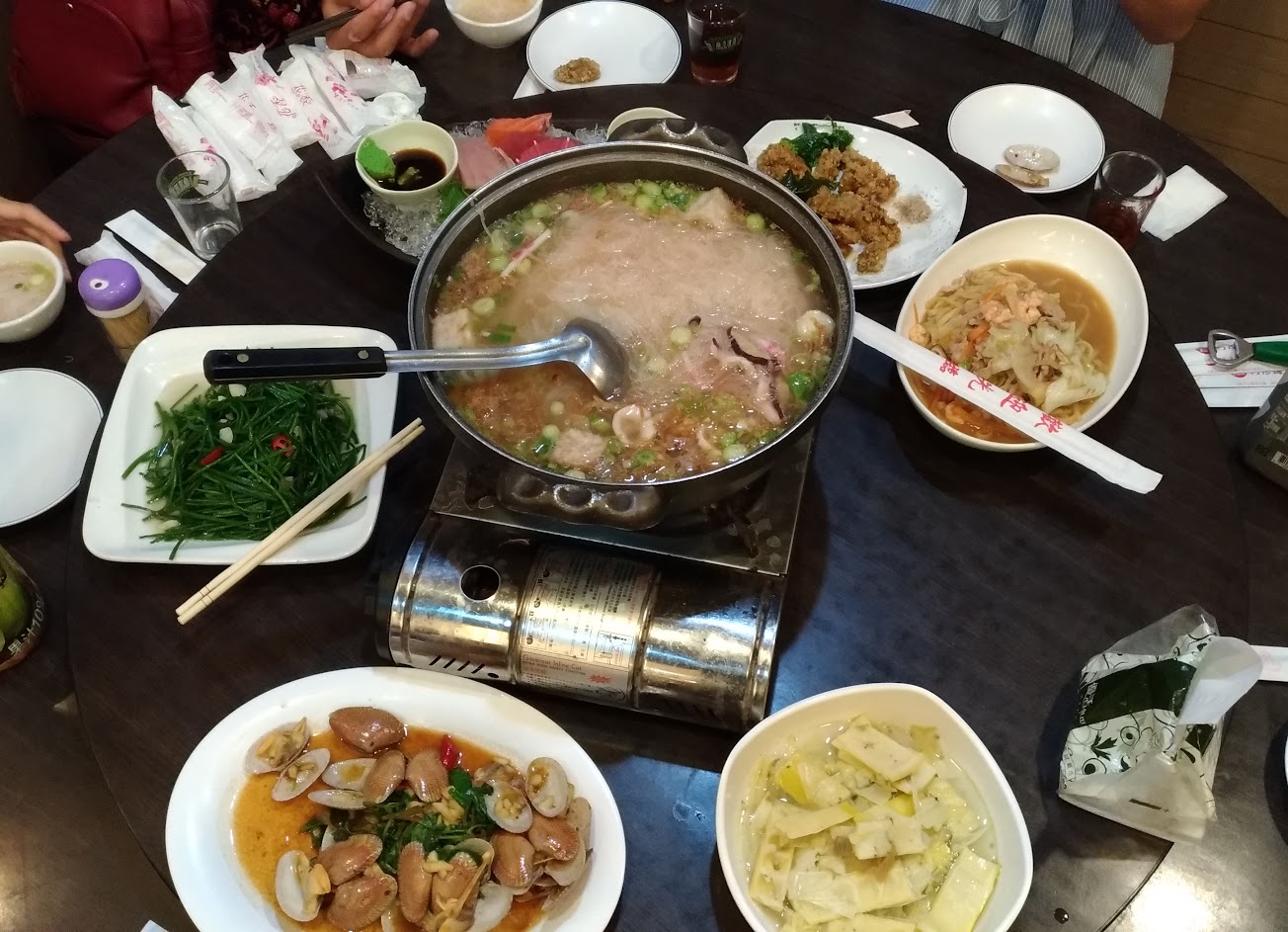 位於嘉義後火車站附近,食菜豐盛美味,最主要就是便宜又新鮮,比起高檔餐廳,絲毫不遜色,這次是兩個月前就預定,坐包廂,不然就只能在外面吹風了