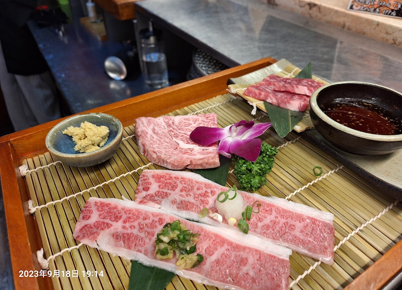 點了一個極上套餐1599、一個A5和牛套餐1680,看網路上說是專人代烤、肉質好吃,為了慶生特地從外縣市來。特別找專人代考是因為喜歡看著專業的人烤到最佳熟度再從到入口的過程,但官東人員分配不是這樣,在你面前烤好的會夾到別人的盤裡(超傻眼),有些是在別的烤爐上烤好(完全沒看到過程)再裝在小碟子上送過來,讓人很明顯是為了快速拼翻桌率,哪裡有空炭就幫忙烤,感覺很不好。