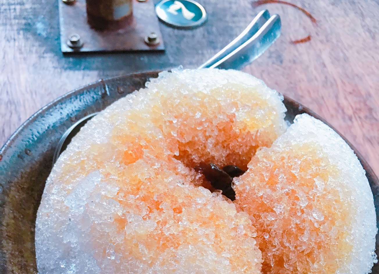 紅豆牛奶冰 紅豆熬煮的軟綿 透出黑糖香 屬傳統古早味 內用區晚上點氣氛燈 昏黃燈下 全木材桌椅 吃個甜滋滋冰品 像來了場小戀愛 爽啦