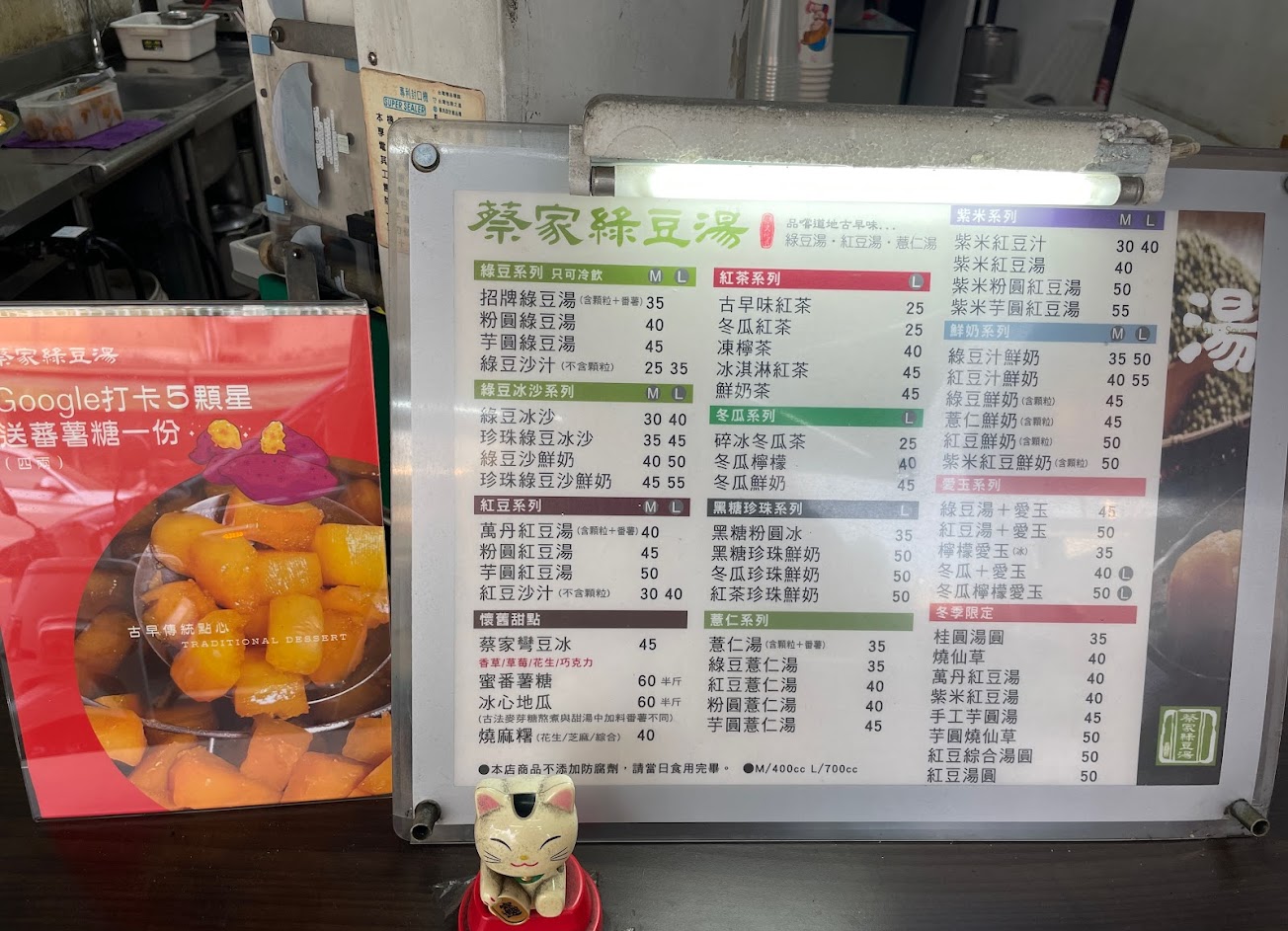 店長姐姐煮的蕃薯糖超好吃,綠豆汁也很退火,重點店長姐姐漂亮,態度很熱情