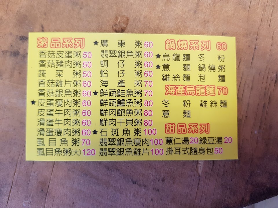 便宜好吃,粥有把米煮糊,剛看過牙醫很適合點翡翠銀魚(高麗菜、吻仔魚、豬肉片)