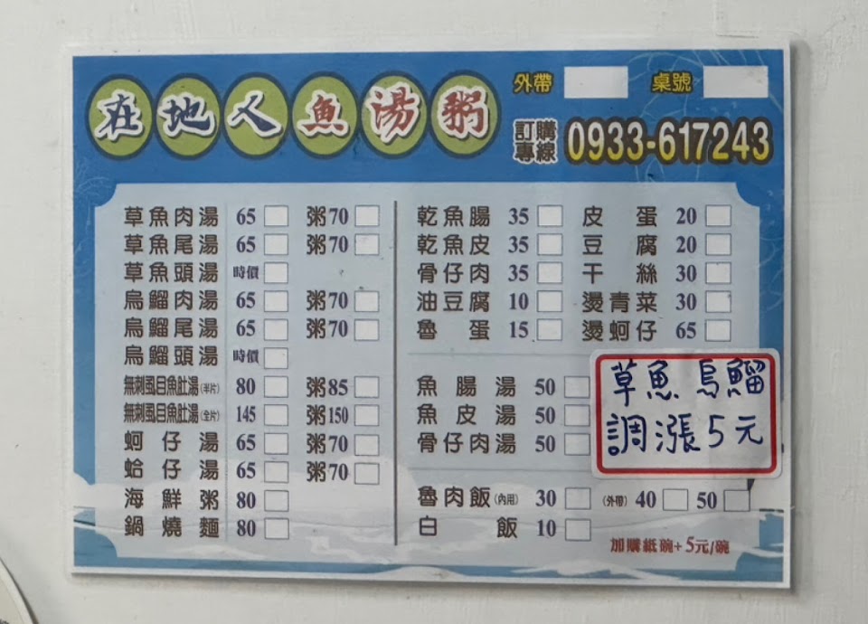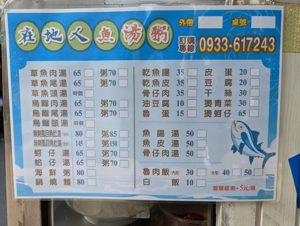 2024最新在地推薦餐廳的菜單_在地人魚湯粥的菜單、圖片