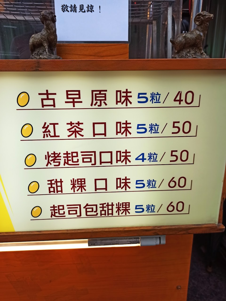 起司雞蛋糕和甜粿雞蛋糕好吃(我個人偏愛起司),加甜粿的口感更讓我驚艷!每次買都忘了拍照直接下肚!現點現做, 雖然需要等待,但從無到有,空氣中慢慢飄散出雞蛋糕的香味,會讓你更期待!