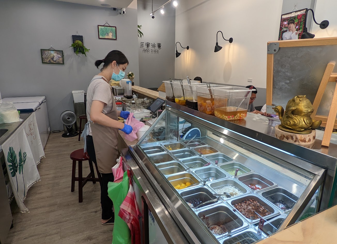 2.店裡非常吵雜,不是客人多…是店家自己人太多也佔了一張桌椅。一個敲打冰塊 聲音超大聲,一個樓上下來的妹妹也超大聲,加上挫冰機也很大聲…整個沒有很舒適的享受你們的冰品。