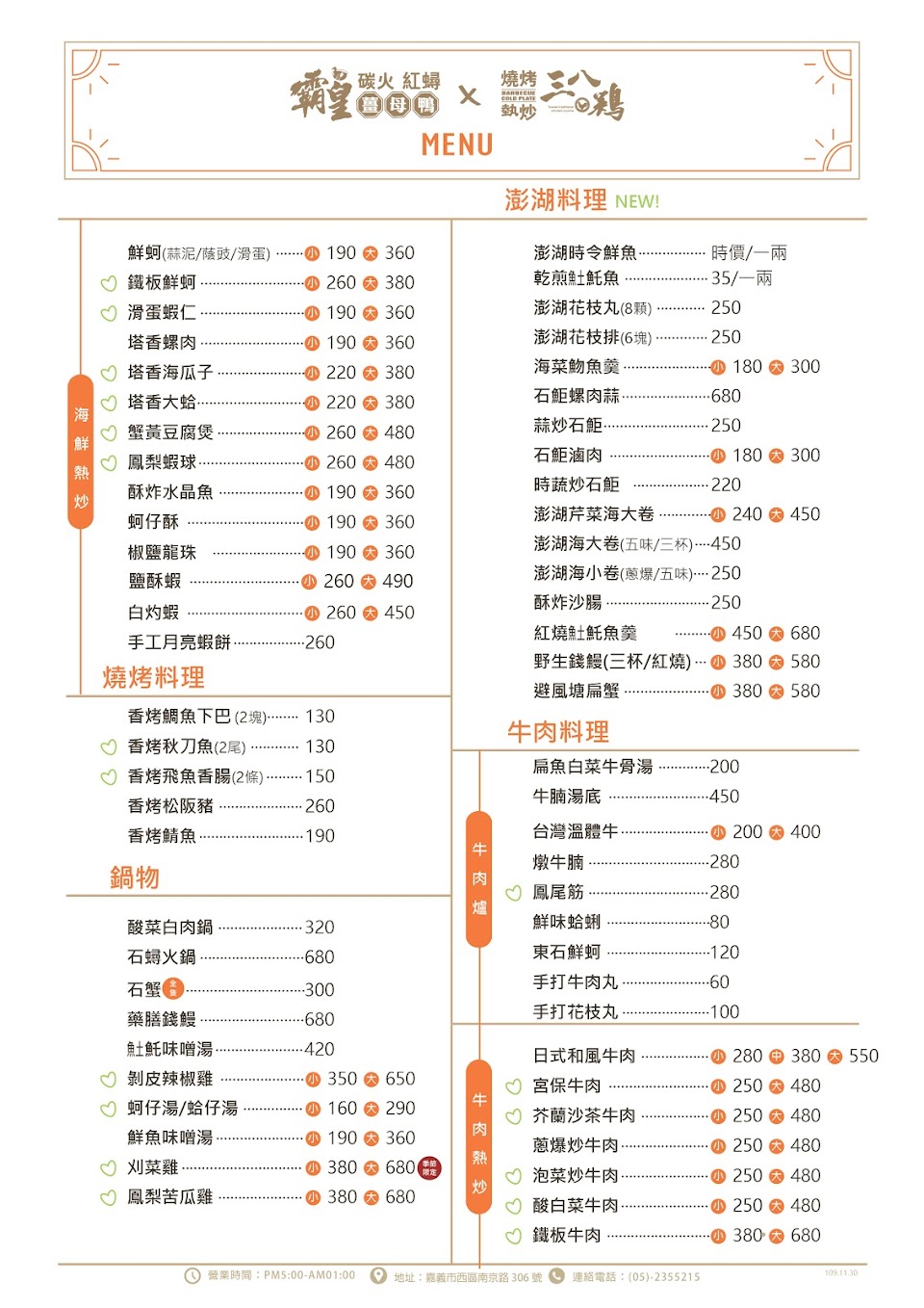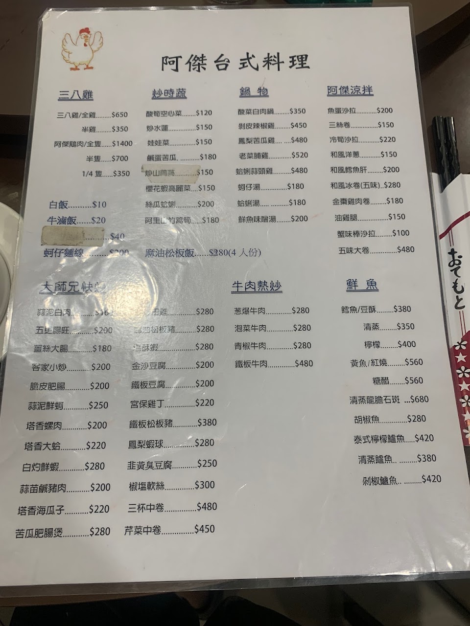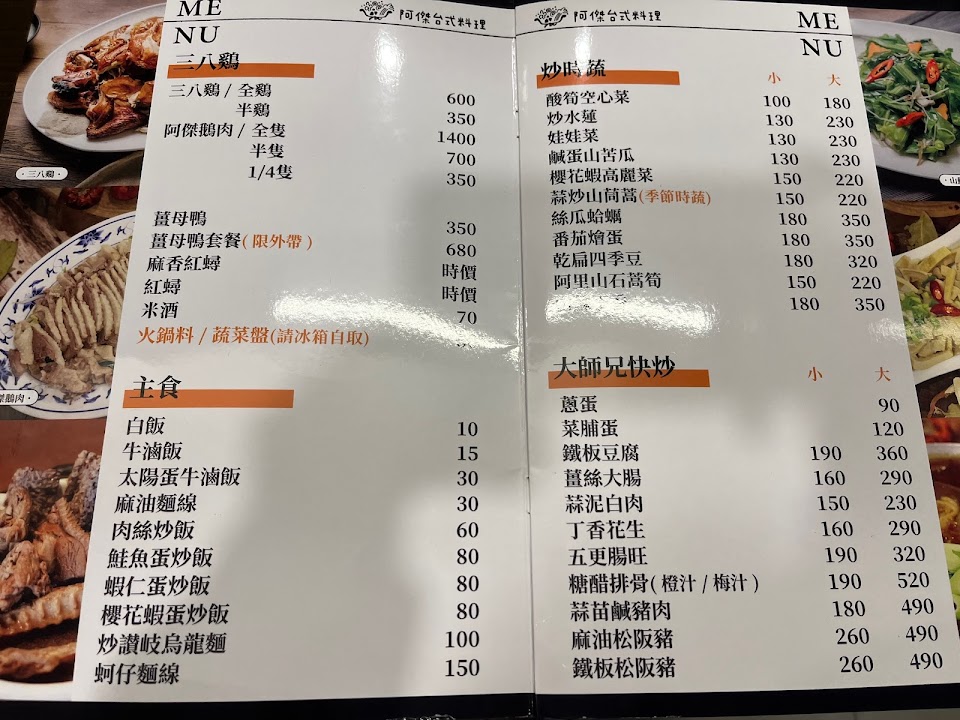 2024最新在地推薦餐廳的菜單_阿傑台式料理X三八鷄X烤蚵吃到飽的菜單、圖片