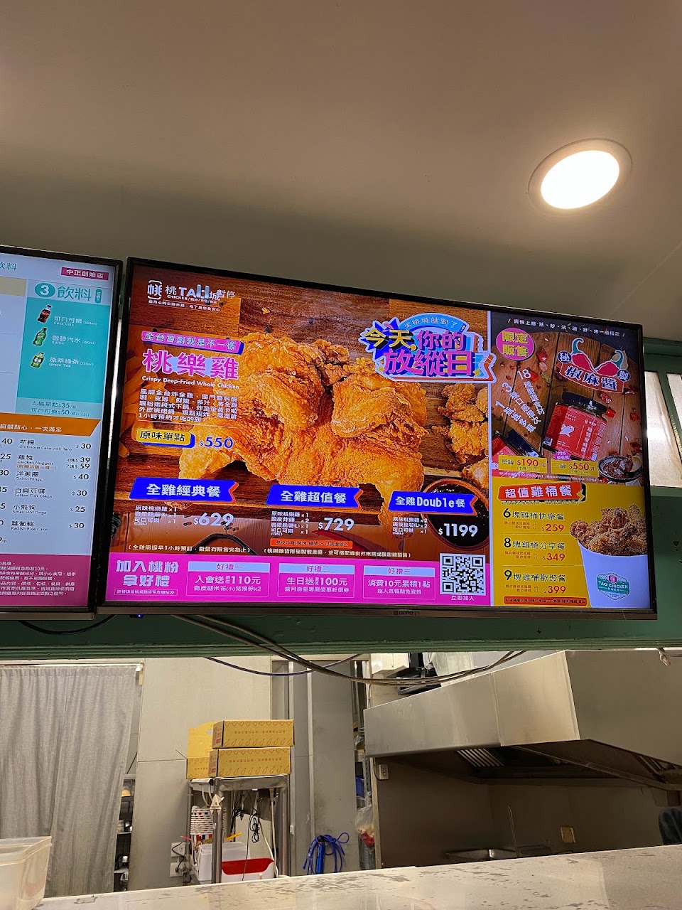 上次只有兩人來,所以沒有吃到炸全雞 這次提早一個小時預定,桃樂雞單點530/隻,搭配分享餐599/699/999都有不同的配餐內容,很划算,適合多人一起用餐~ – 而且有外送服務,可以送到飯店,非常的方便 重點是桃樂雞超級好吃,外皮酥脆但不會有柴感,裡面的肉也是軟嫩多汁的,真的很好吃 搭配的醬料也好優秀??
