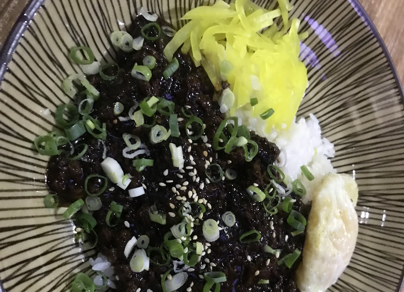 倆人用晚餐點了黑嘴麵 豬肉石鍋拌飯 煎餅