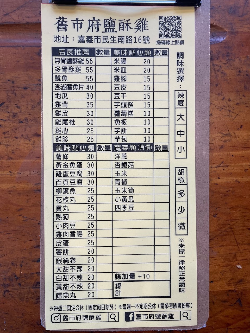 來嘉義必吃美食,每次都要點很多吃才滿足,食材新鮮選項多,胡椒鹽獨特連辣椒粉都跟其他家不一樣,疫情影響店家貼心推出線上點餐超方便的
