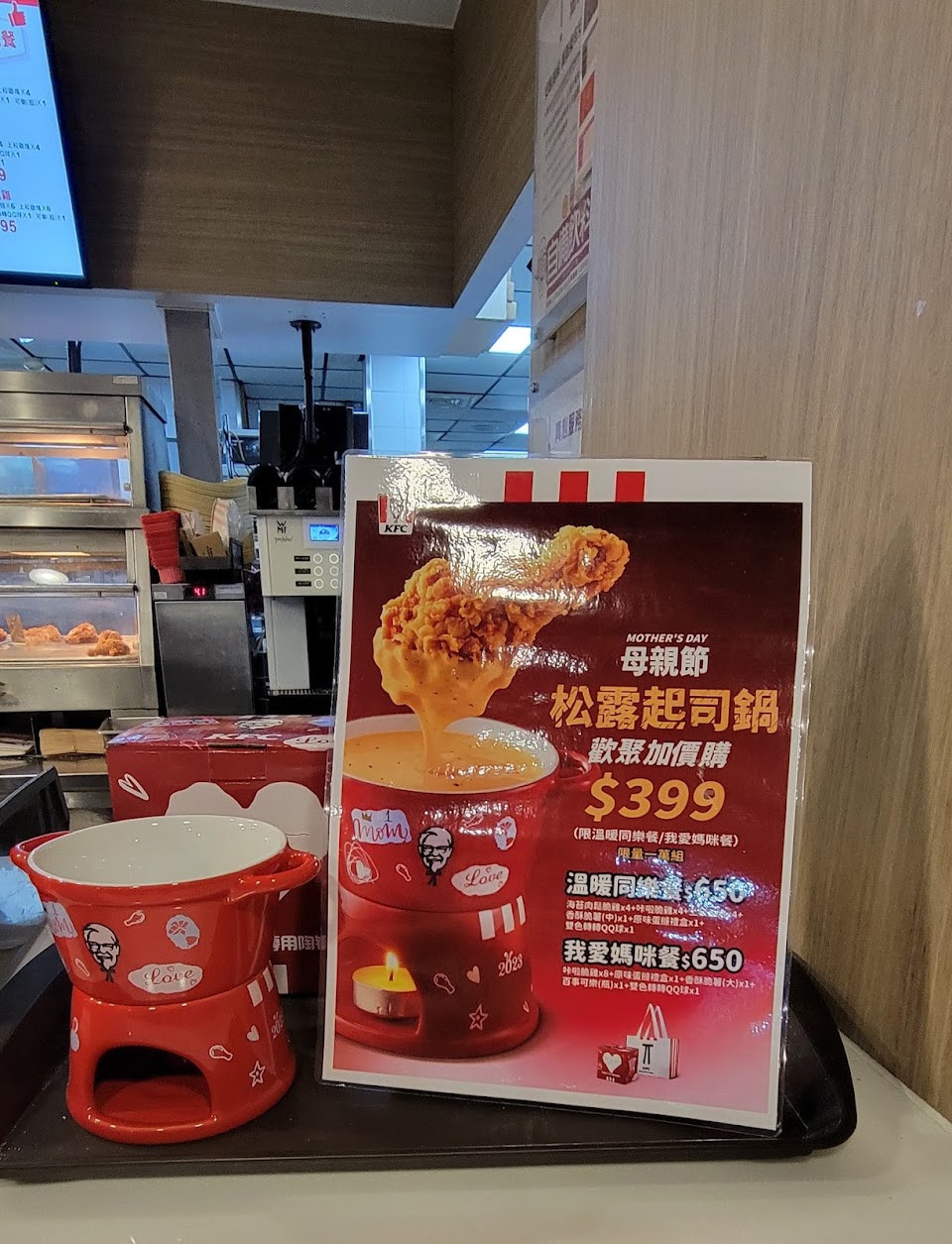 該餐廳冷氣體感較差 感覺稍稍炎熱 建議前往用餐時穿長褲避免叮咬 服務 內用 餐點類型 午餐 平均每人消費金額 $200-400 餐點:5 服務:3 氣氛:4 建議的餐點 肯德基蛋撻 辣味炸雞跟雞塊