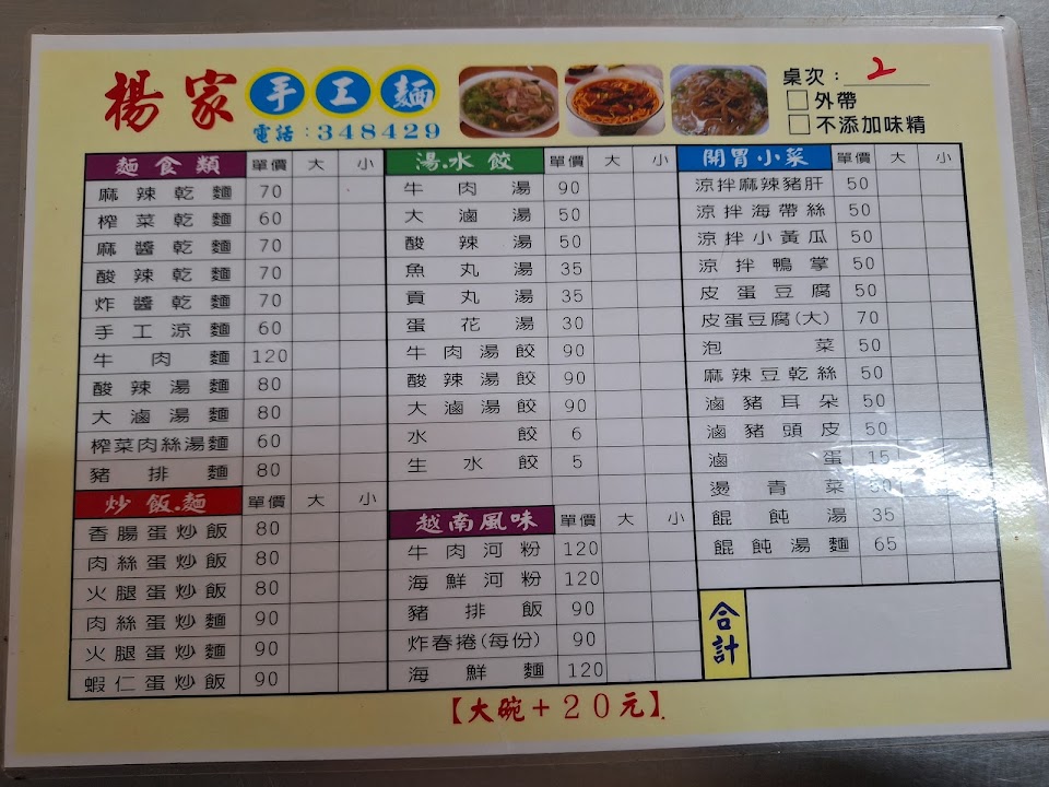 2024最新在地推薦餐廳的菜單_楊家手工麵的菜單、圖片