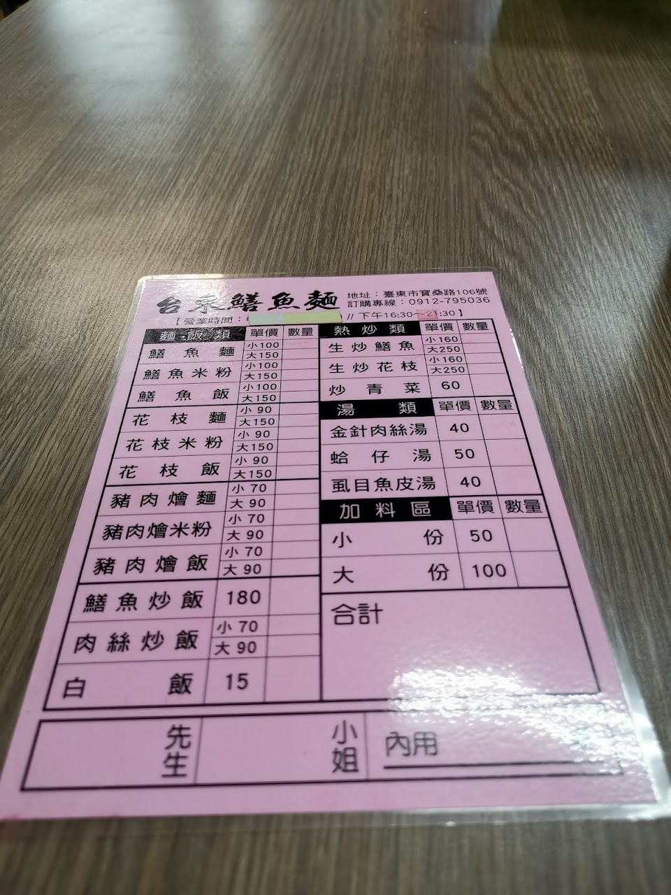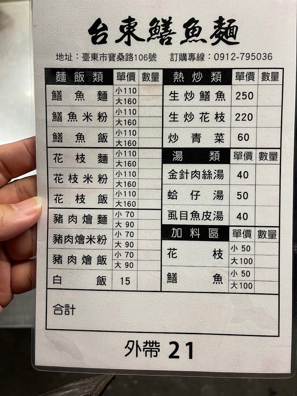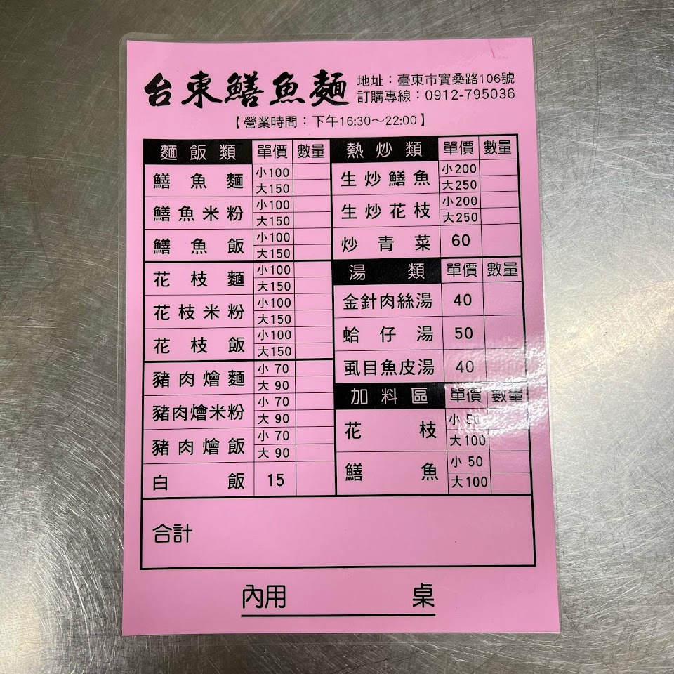2024最新在地推薦餐廳的菜單_台東鱔魚麵的菜單、圖片