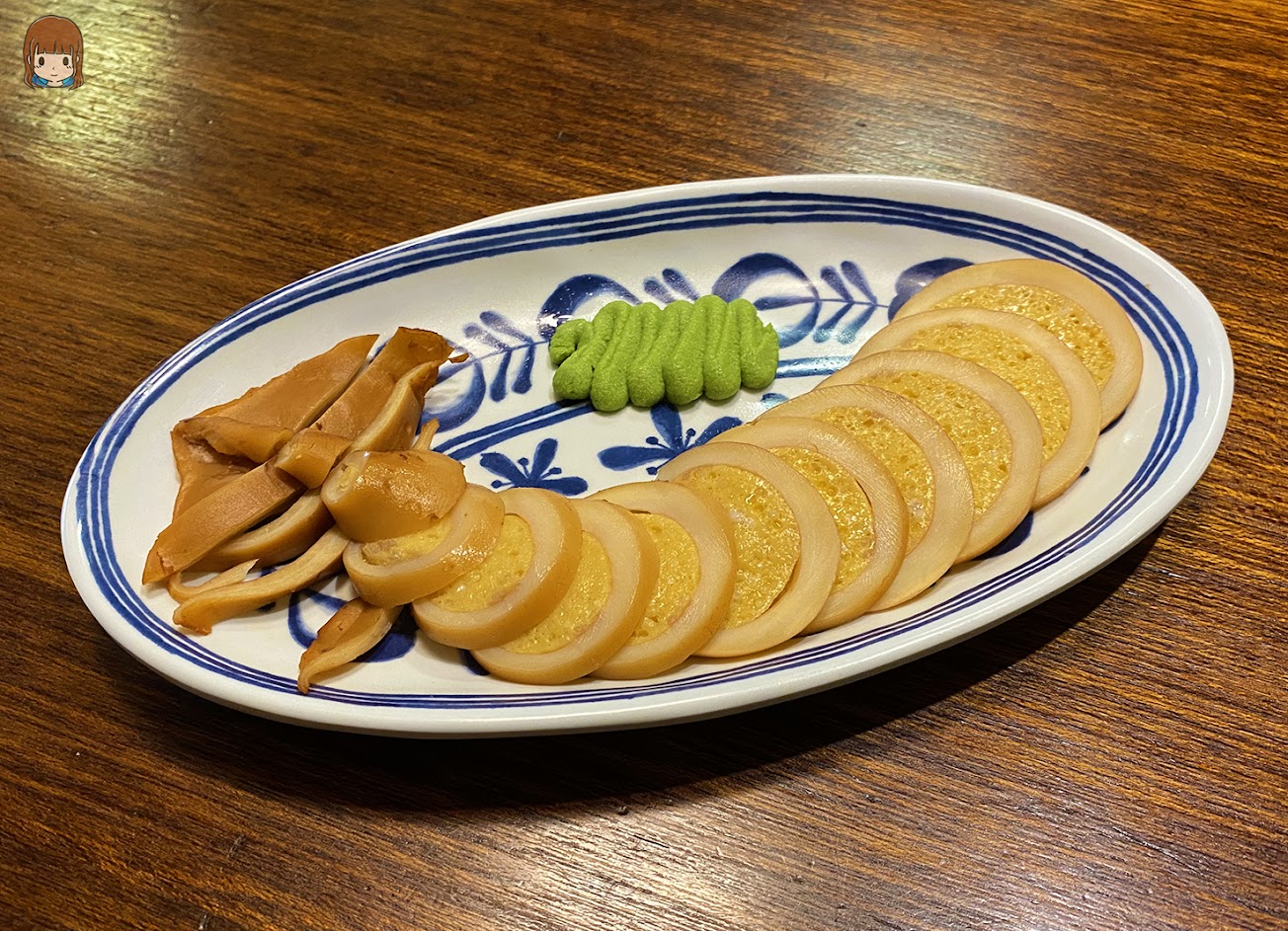 外層的煙燻小卷包裹著內含飛魚卵的魚漿,是這間店的特色必吃之一。