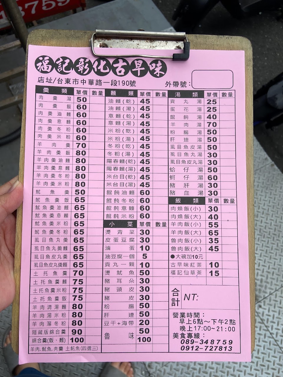 出遠門在外永遠最懷念的台東隱藏版美食,在外縣市都吃不到的古早味!羊肉湯、魯肉飯、湯麵都好好吃!! 服務 內用 餐點類型 晚餐 平均每人消費金額 $800-1,000 停車場 門口好停車 親子友善程度 對老人小孩友善親切