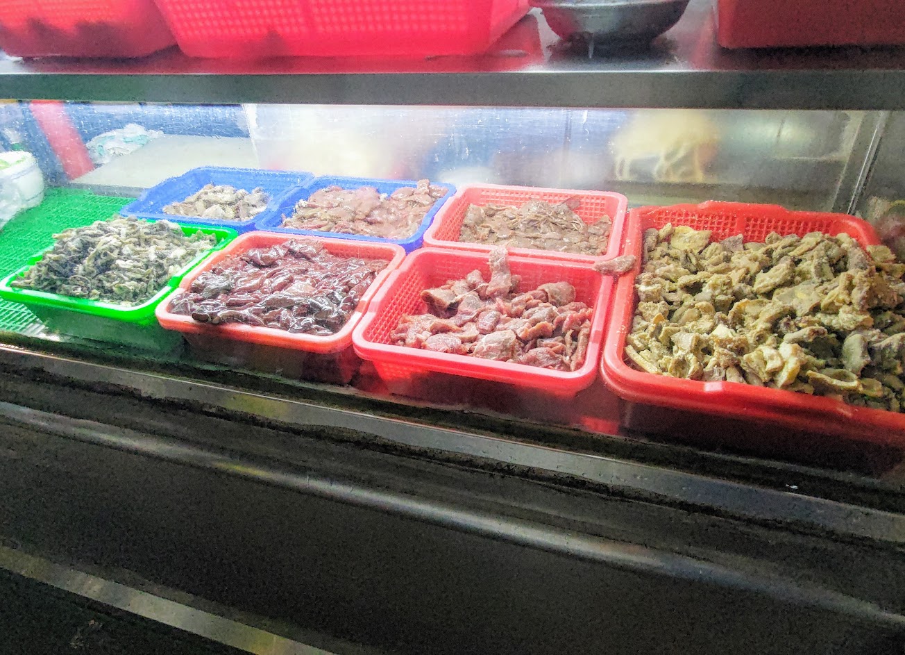 牛雜種類多。臭豆腐跟葱爆牛肉跟牛雜湯都很厲害,滷味豆乾也不隨便,有點功夫。