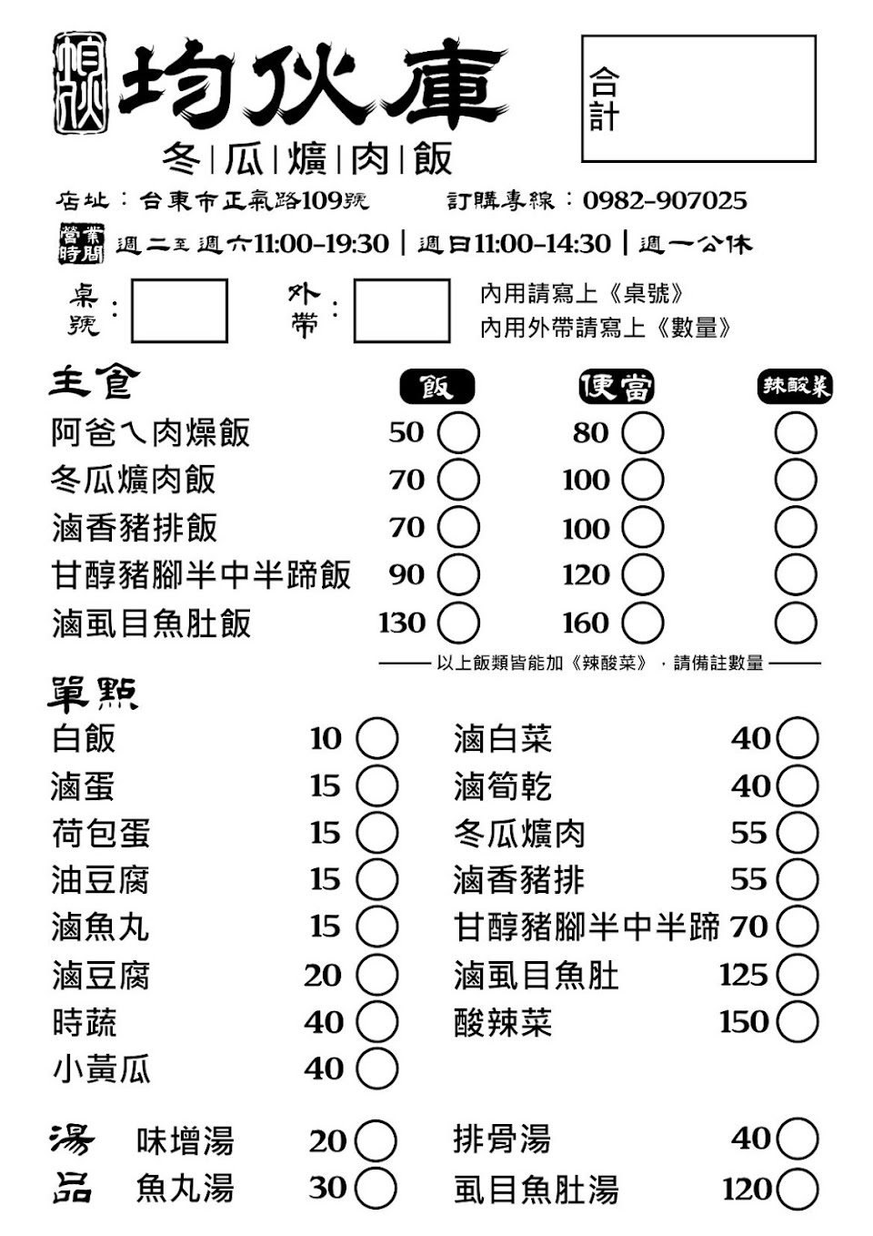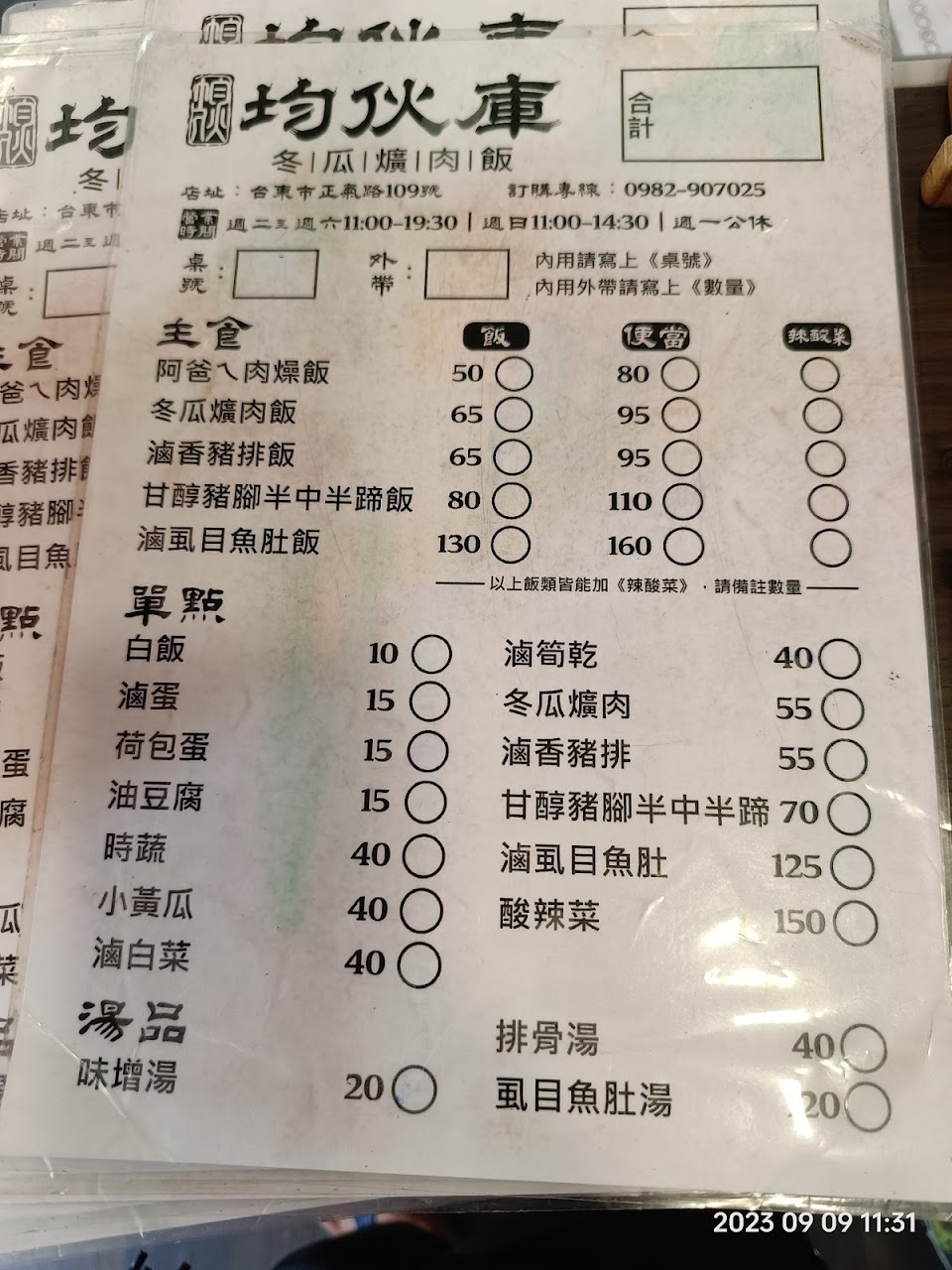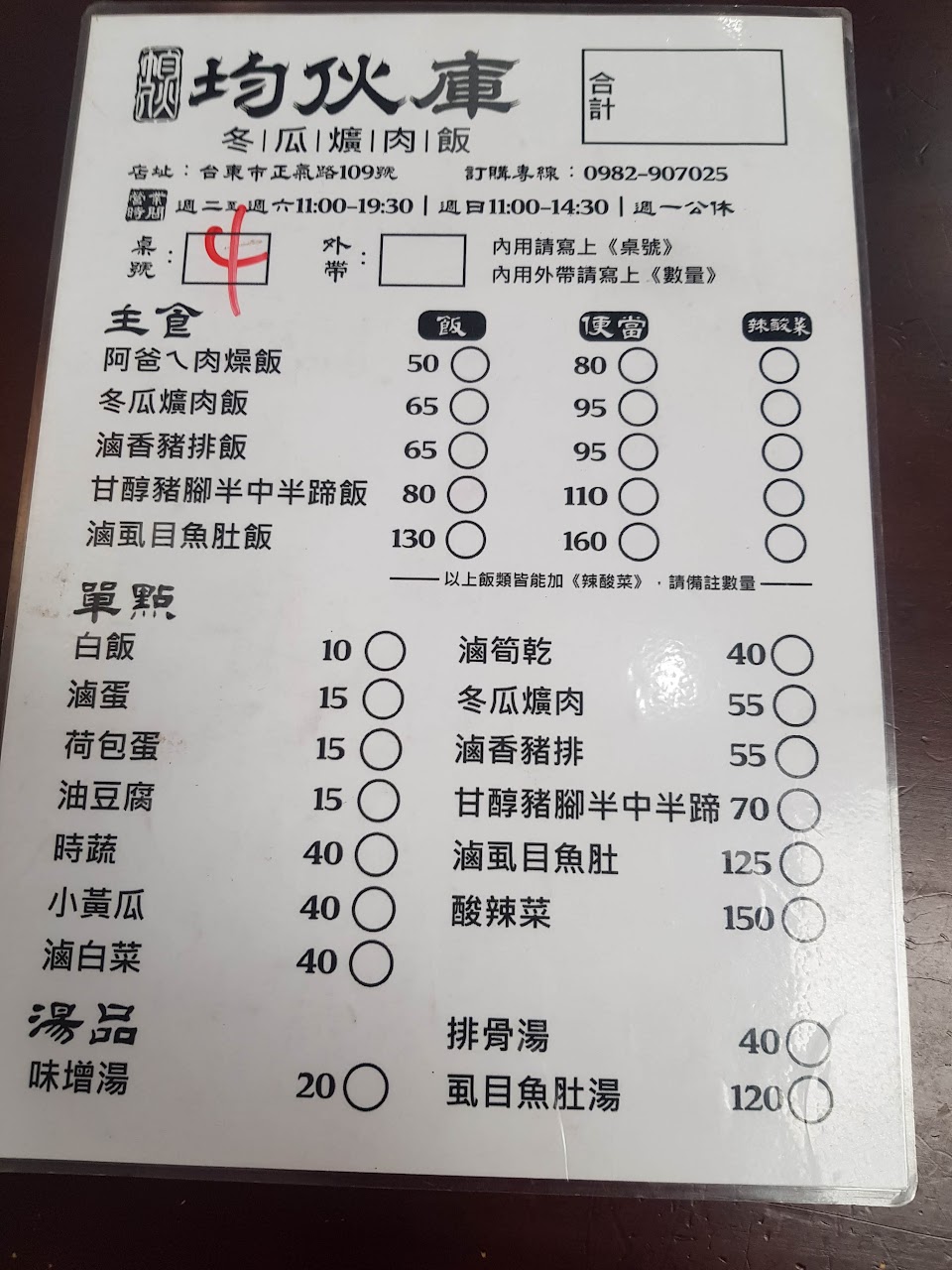 2024最新在地推薦餐廳的菜單_均伙庫冬瓜爌肉飯的菜單、圖片